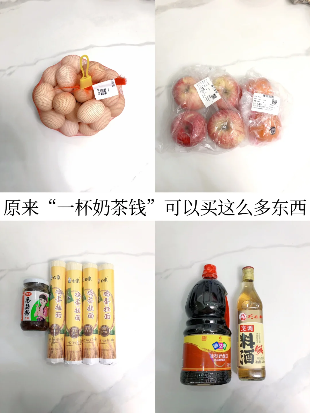 一杯奶茶可以买到很多其他的东西,9根黄瓜,4根玉米,14个鸡蛋,两颗花菜,这些东西是我们生活必需品,而奶茶并不是必需品。