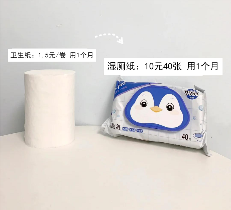 但是你有真的认真计算过将卫生纸换成湿厕纸,生活成本上涨多少吗?卫生纸1.5元一卷,能用1个月,