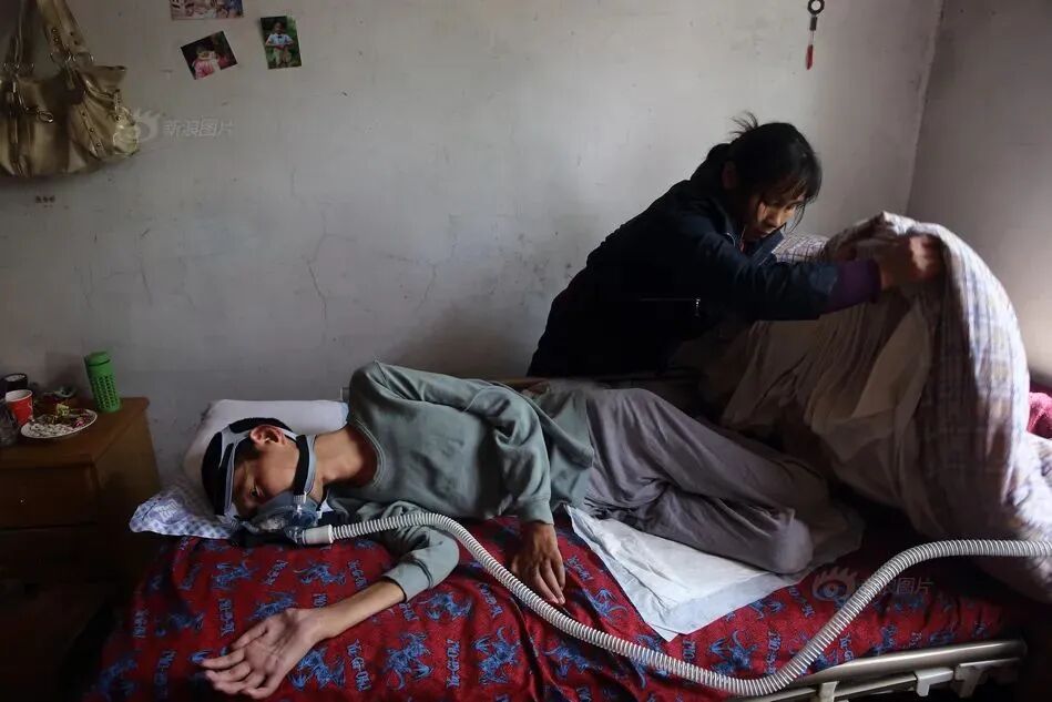即便在全国最顶尖的渐冻症治疗医院北京大学第三医院,也是一副人间炼狱的模样。