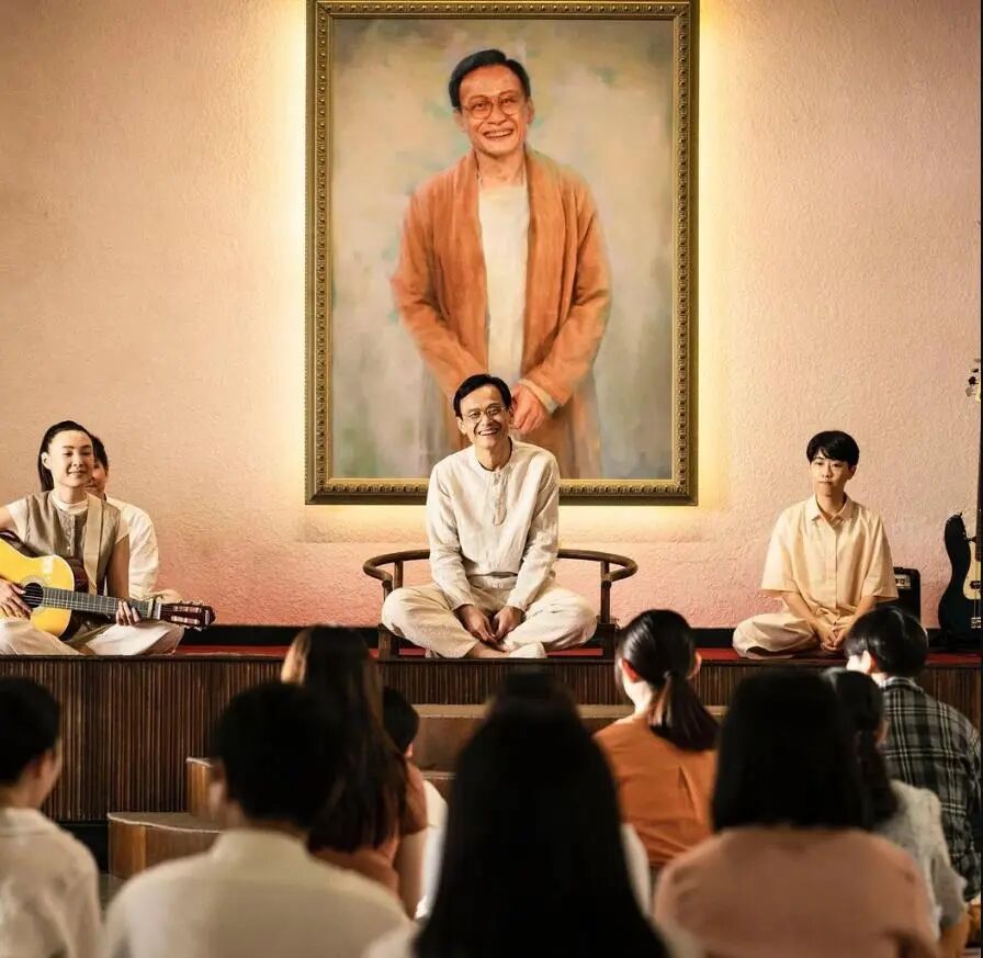 大师法会中,所有人身着浅色服饰,于敞亮开阔的木地板上,席地而坐,伴随着悠扬的疗愈圣歌,所有人都沐浴在启迪灵魂的春风里。