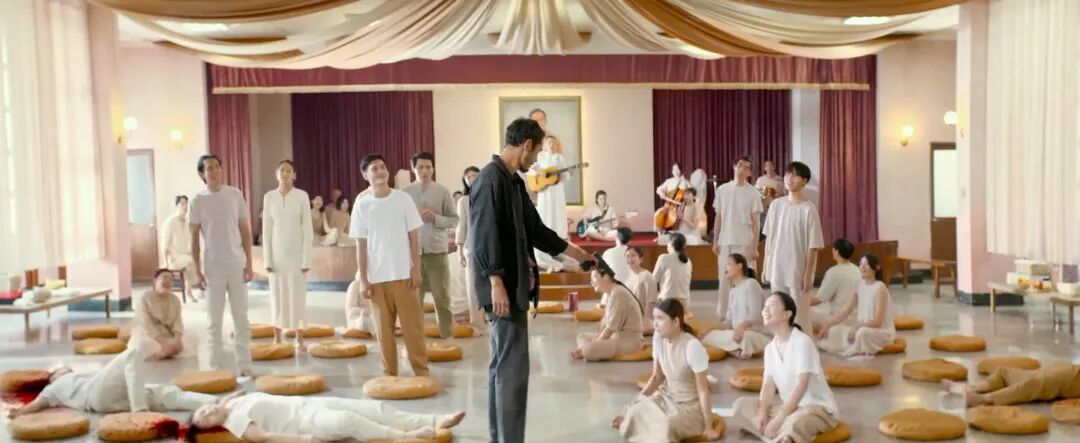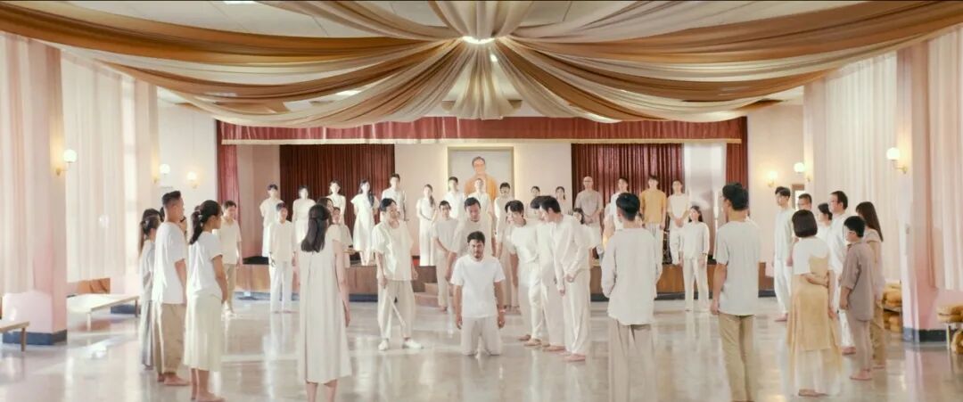 加入典礼中,身着白衣的众人将陈桂林围在中间,他跪在地上,挺直腰板。接受着尊者和手下的鞭笞,每打一下,尊者都发出一道责骂。