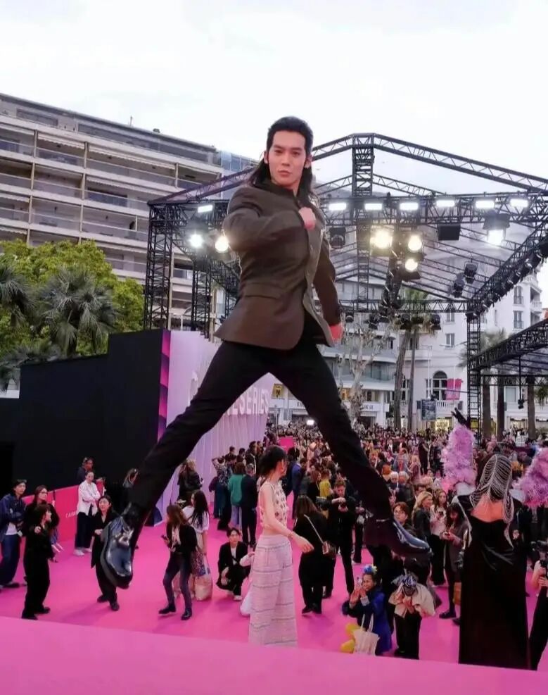 你很难想象其他流量明星在戛纳这种庄严的场合,会鲜活地跳起来,满足粉丝拍照的要求。