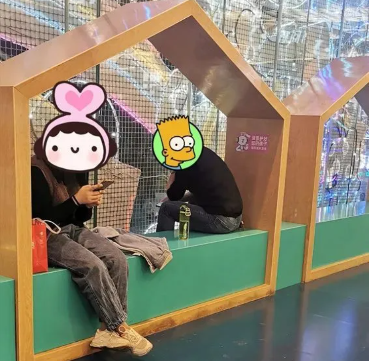 家长和孩子之间不仅隔着围栏,还有手机营造的虚拟时空。