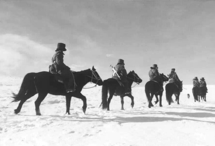 她骑着战士们备好的军马,从边防翻山越岭,来到前哨班,看着一个个战士,在强光下,整齐列队,如同一块块巨石。