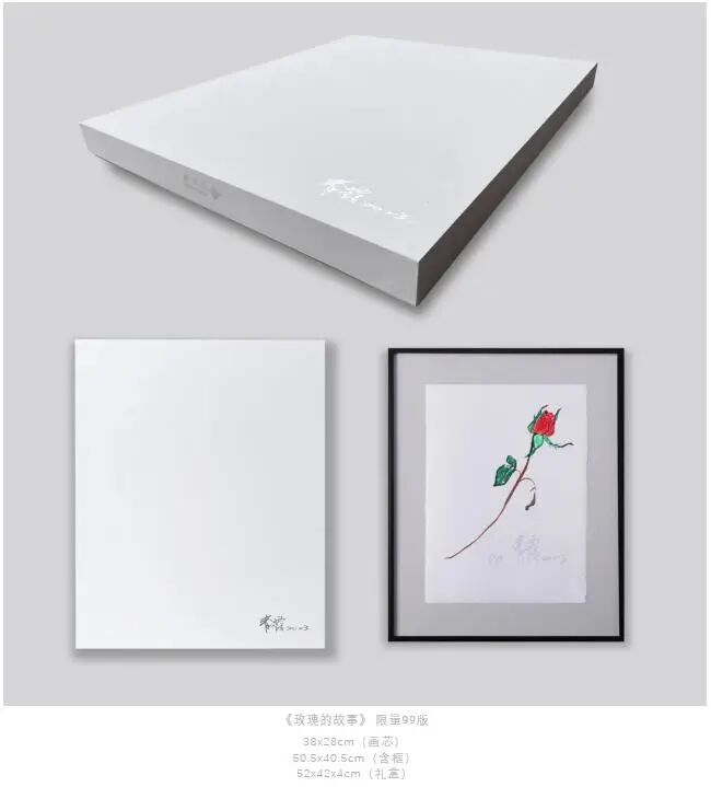 2023年情人节前夕,名为“玫瑰的故事”的画作,以丝网印刷工艺制成版画,每一幅均有作者亲笔签名。