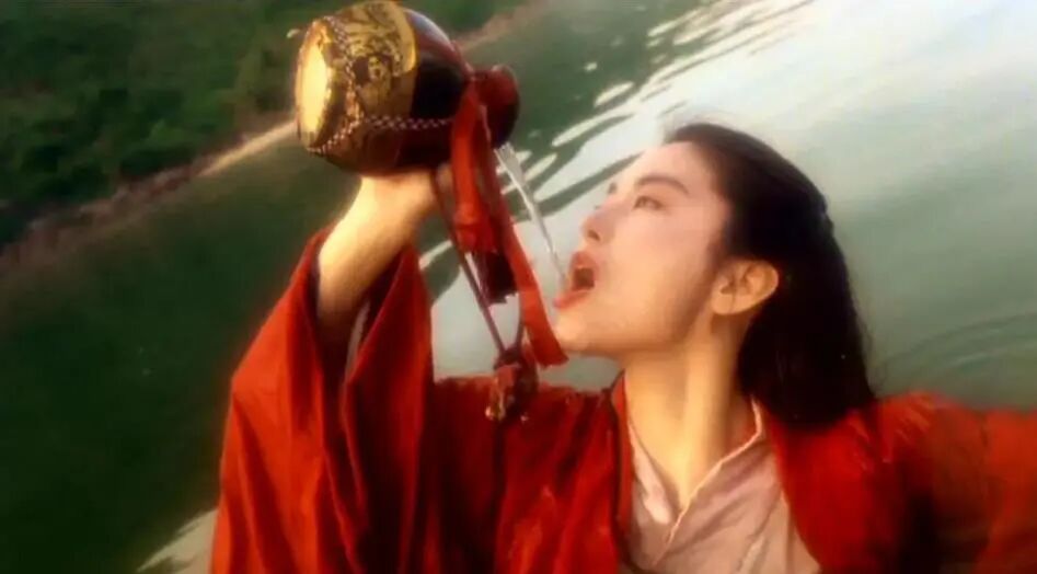 《笑傲江湖》中,她一袭红衣,半身掩于碧波之中,昂着头,高举酒壶,玉露琼浆倾泻而下,她塑造的东方不败,无人能出其右。