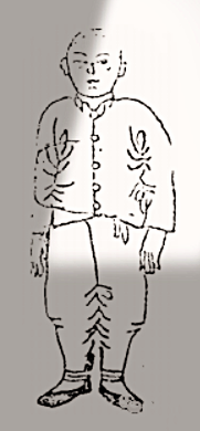 预备式同前(图1),由预备式左足向前稍进,膝稍屈,成丁虛步,将右腿上提,两臂前伸,两手微屈如抱球状,置左足上之两手中,足尖足踵成一直线(图3)。
