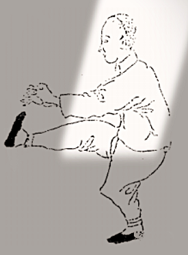夫奔丹田者,如射箭也,丹田如弓,气似箭,此为内功。外则两臂比弓,脚比箭,奔之既久,前后左右高低,意之所至,身必随之。