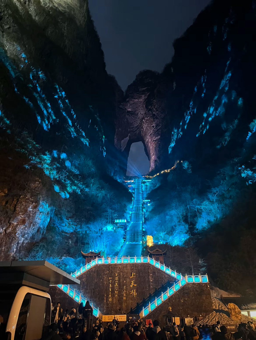 观景体验:天门山晚上灯光秀的开放主要是为了提升下山游客的游玩体验,让他们在欣赏天门山壮丽景色的同时,也能感受到夜晚的浪漫与神秘。