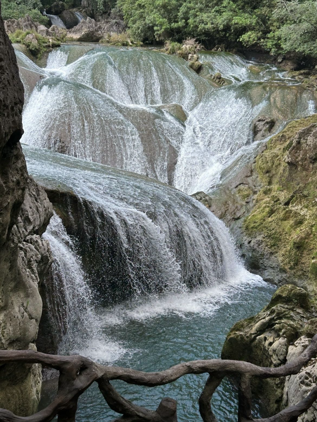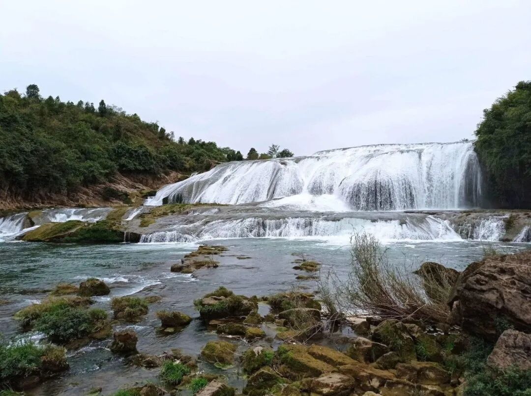 站在黄果树瀑布前,仿佛置身于一幅巨大的水墨画中。那奔腾的水流,如同千军万马般汹涌而下,气势磅礴,震撼人心。在这里,你可以感受到大自然的神奇魅力,也可以领略到人类与自然的和谐共生。
