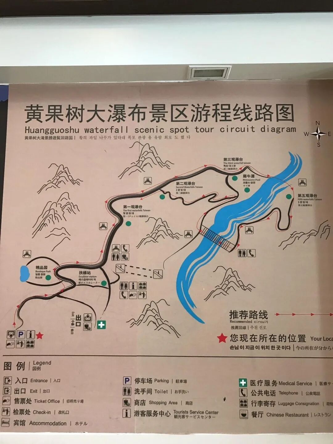 游览路线:推荐从瀑布上游开始游览,依次经过陡坡塘瀑布、天星桥、黄果树大瀑布,最后参观黄果树盆景园。