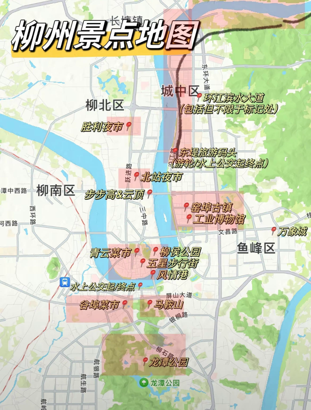 3元游柳江,导航“南车渡码头”上船,东堤旅游码头下船,全程50分钟,携带身份证/身份证照片