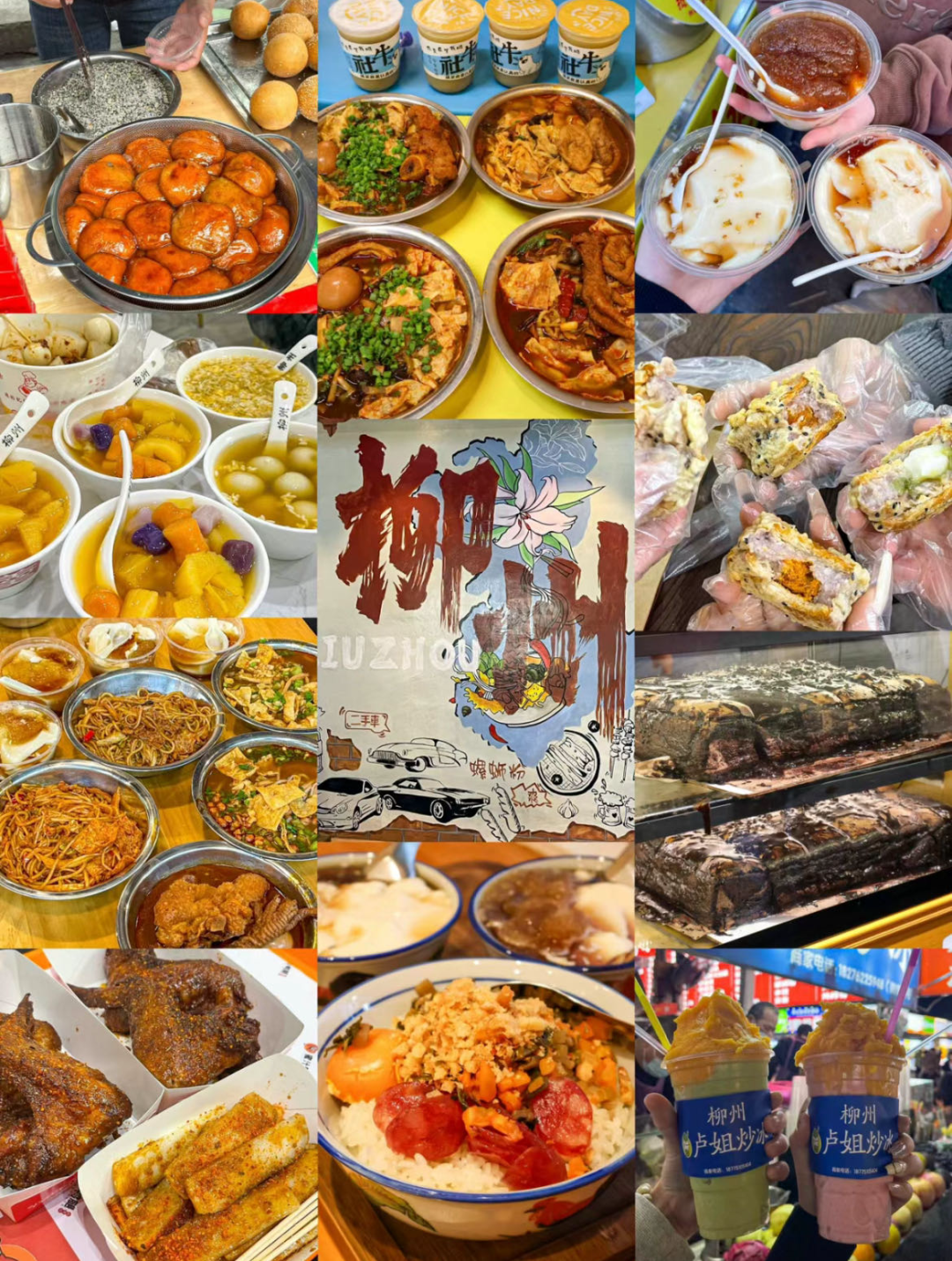 柳州市中心步行街,名小吃聚集地!古早味蛋糕、四姨妈粉角、张飞/韦韦木薯羹、大华干捞粉、点都得蜜汁鸭腿