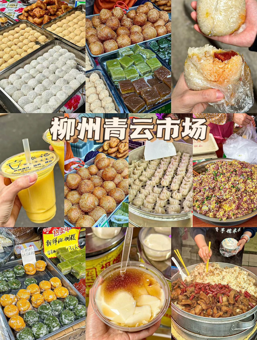 柳州老菜市场之一,超多当地小吃,糯米饭、水糕、豆粉馍、芝麻糊等等......20块钱可以吃到撑!