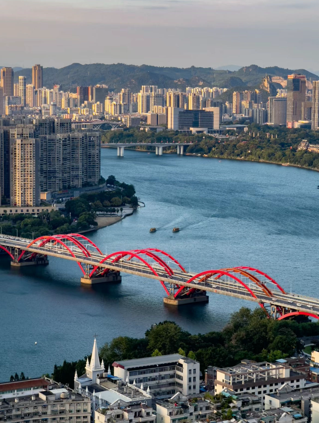 然而柳州令人上瘾的不止是只有螺蛳粉,还有绝美的山水风景,充满烟火气的街道,独特的水上公交,俯瞰全市的公园等等
