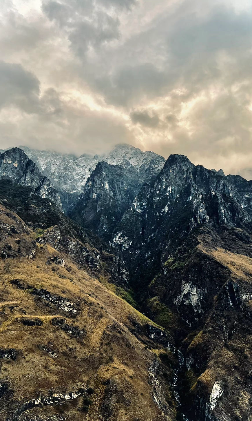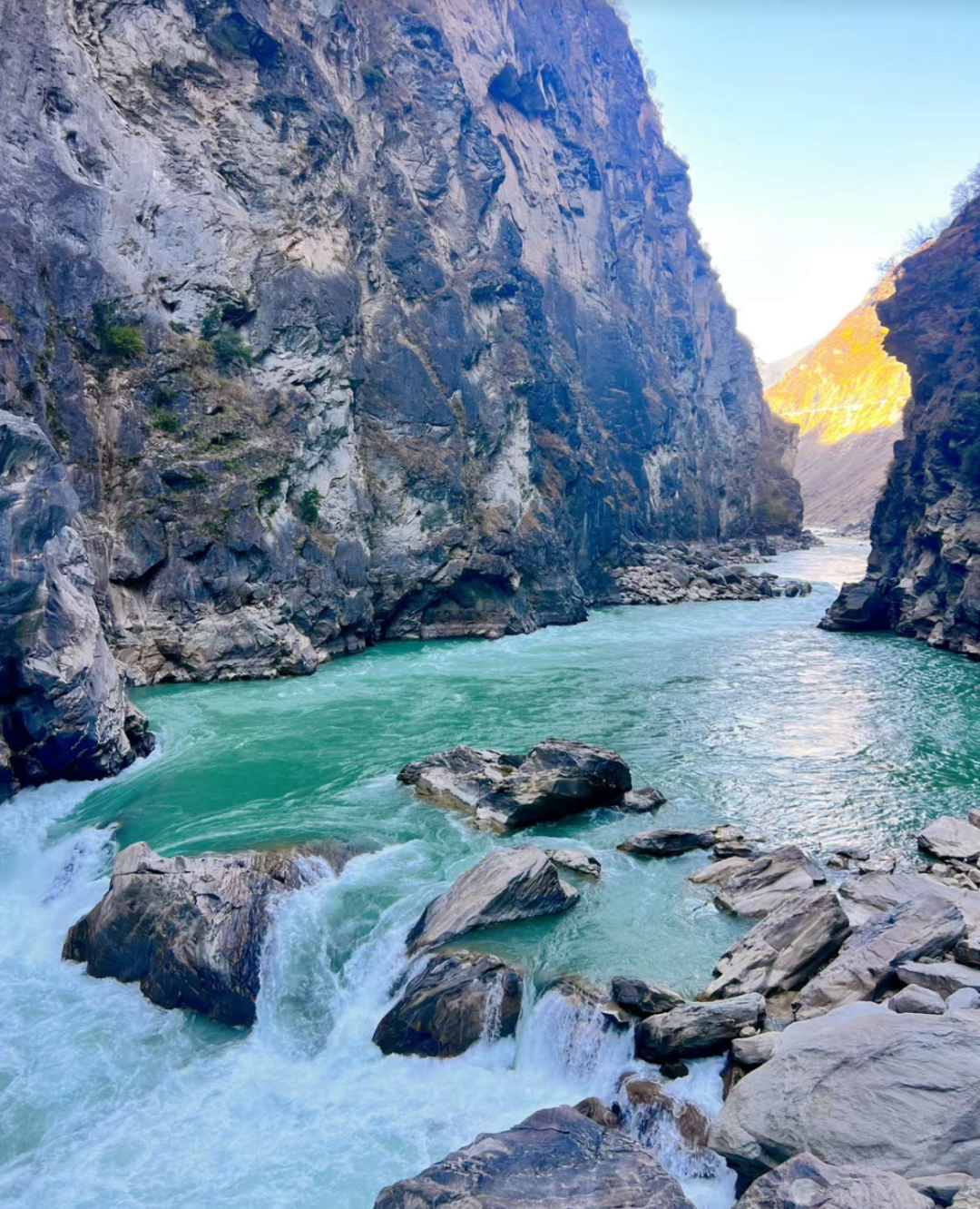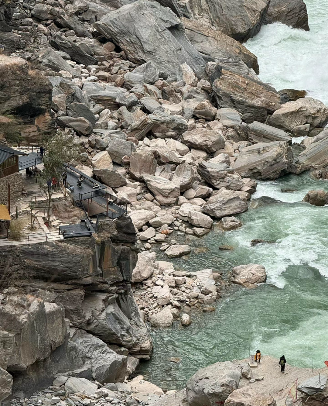 金沙江,蜿蜒在峡谷之中。在峡谷两侧玉龙雪山与哈巴雪山并肩而立。你可以同时看到雪山,峡谷,江河,瀑布。而人类在这些面前显得格外渺小