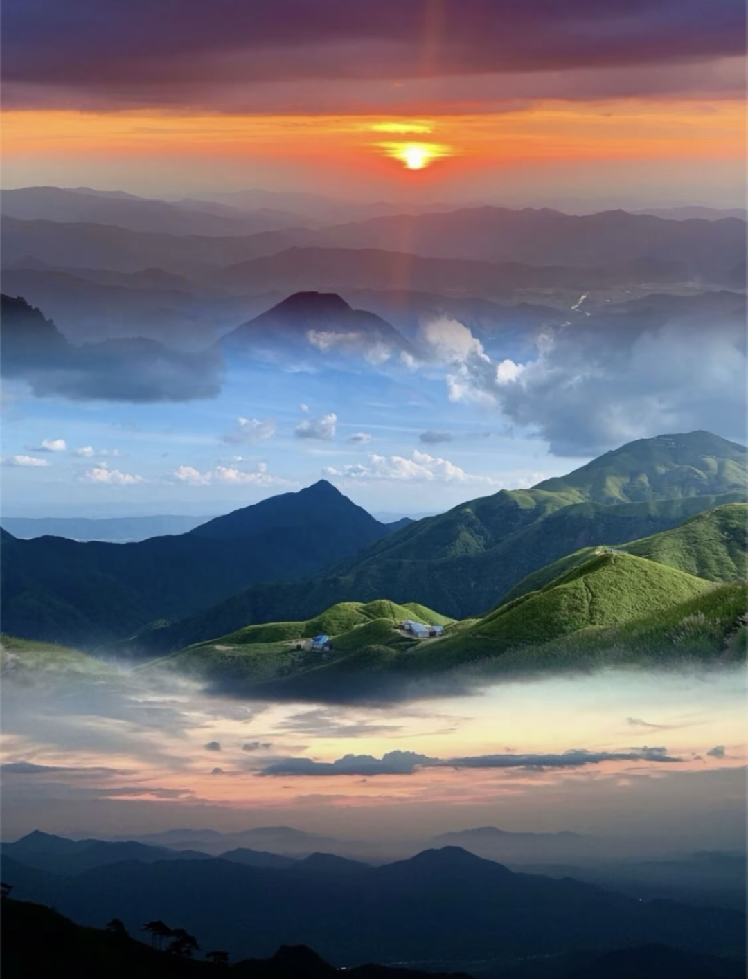 清晨的云海和日出、中午的翠绿峰林、晚上的日落,每一天的景色都各有千秋。