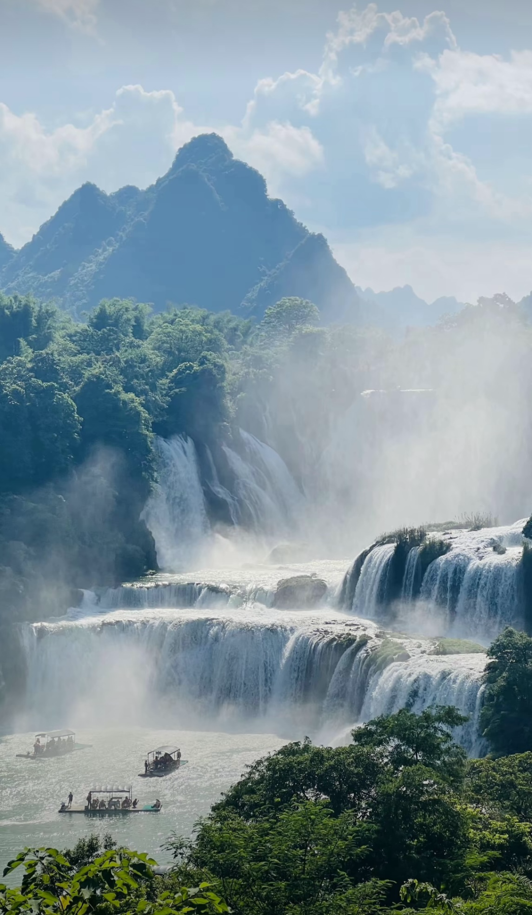 德天瀑布与紧邻的越南板约瀑布相连,是亚洲第一、世界第四大跨国瀑布。