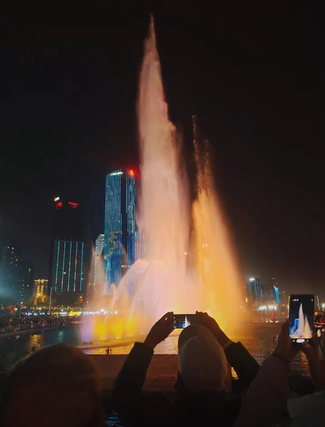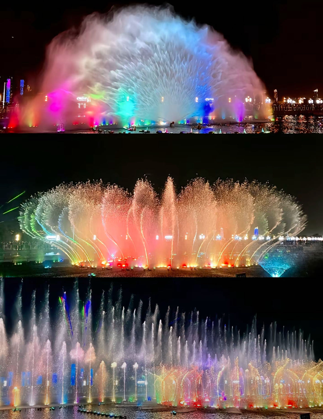 喷泉主喷高度为128米,结合音乐、灯光和高科技水景技术,为游客带来了十分震撼的视听盛宴。