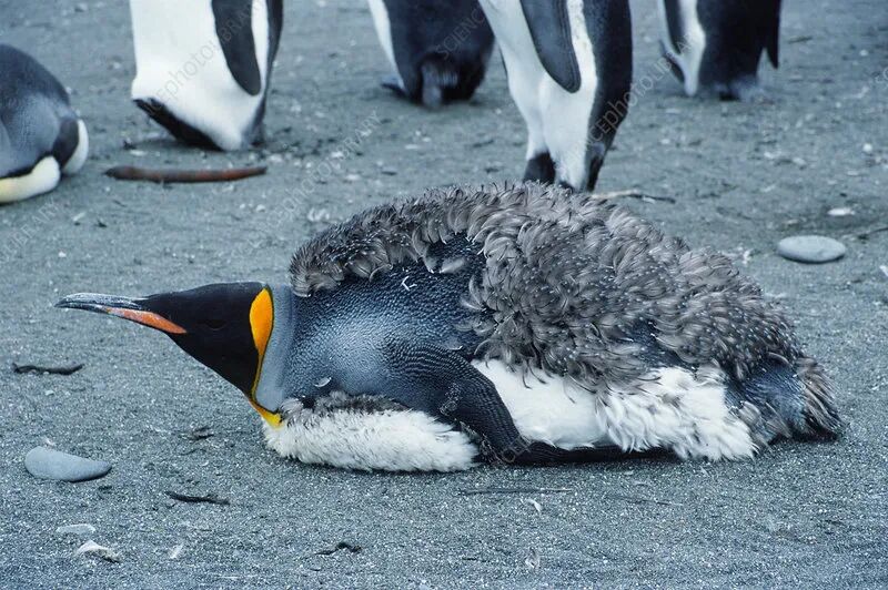 新羽毛长在旧羽毛下面,把它推出来,直到新的羽毛完全就位,旧的羽毛才会脱落,在换羽期间,企鹅看起来会比较邋遢。