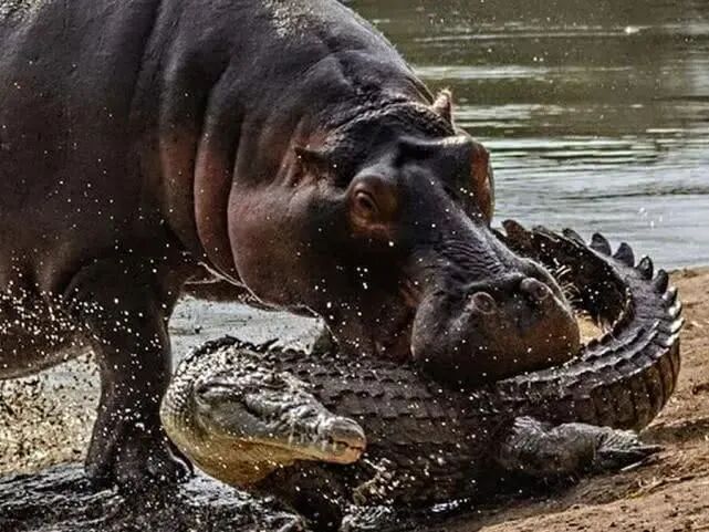 虽然鳄鱼没能力伤害成年河马,但是会对小河马下手,所以河马驱赶鳄鱼本来就是天性。