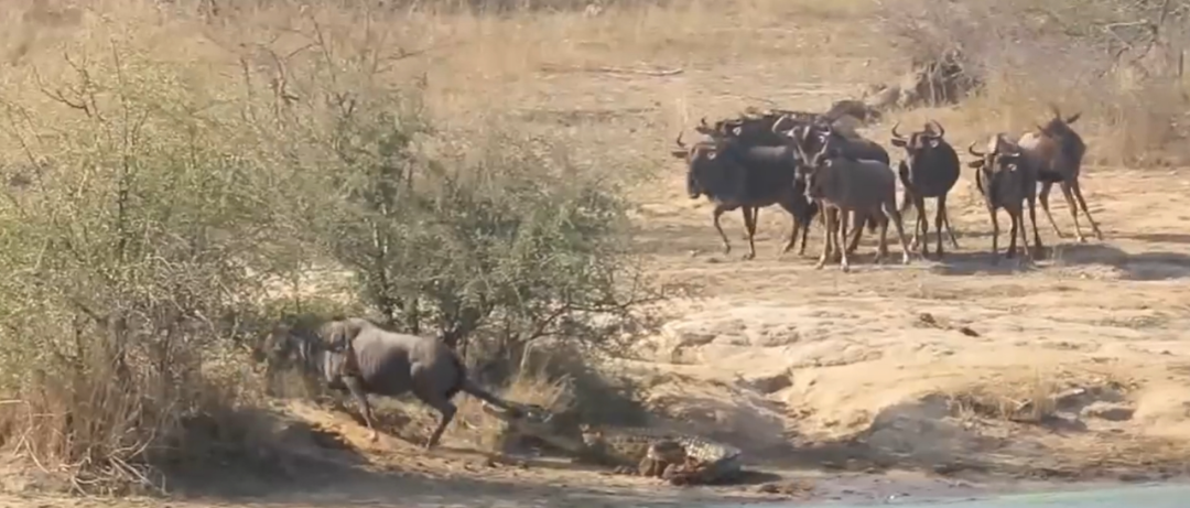 如果角马没有离开的话,河马很可能也会像对待鳄鱼一样对待角马。