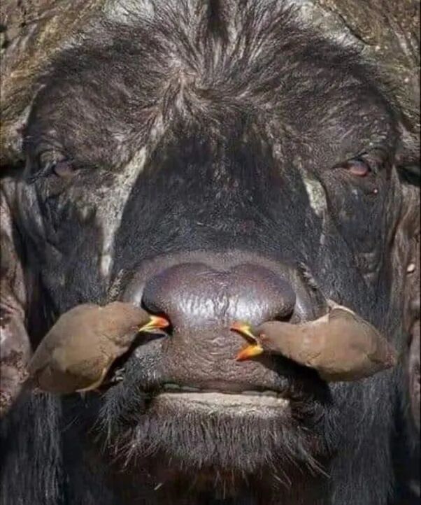 这种在非洲野牛鼻孔、耳朵随意活动的鸟,并不会被赶走,它们叫牛椋鸟。