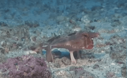 当然,这种鱼最奇特的地方是,它们并不擅长游泳,而是喜欢用特殊的四条腿在海底行走。