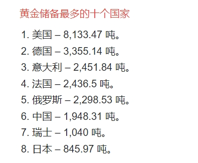 上图是截止2023年全球黄金储备最多的十个国家排名,其中排第一的美国只有8000吨,而中国还不到2000吨。