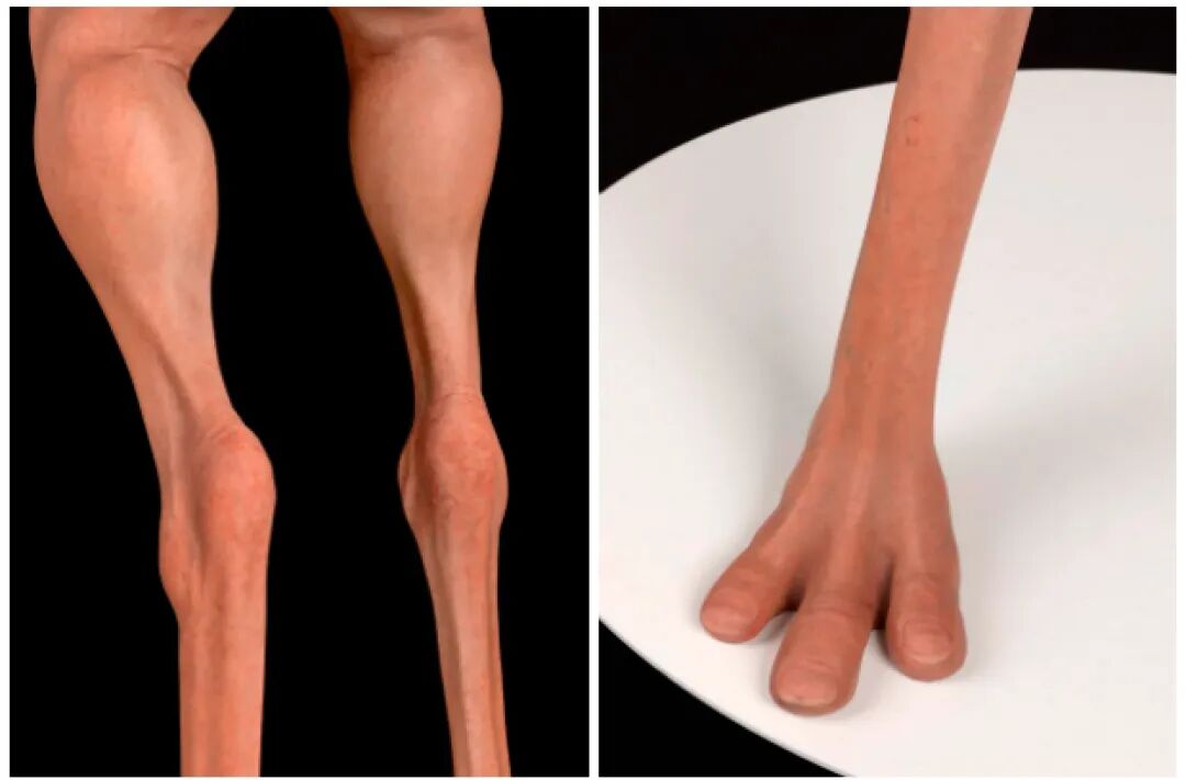 小腿和脚的改变非常明显,小腿骨又长又细,只有3趾,这借鉴了鸸鹋的腿,因为人类的小腿肌肉太多了,这不不利于跑步,而这种细腿不仅跑得快,还比较稳,避震效果还非常出色——这可以降低膝盖损伤。