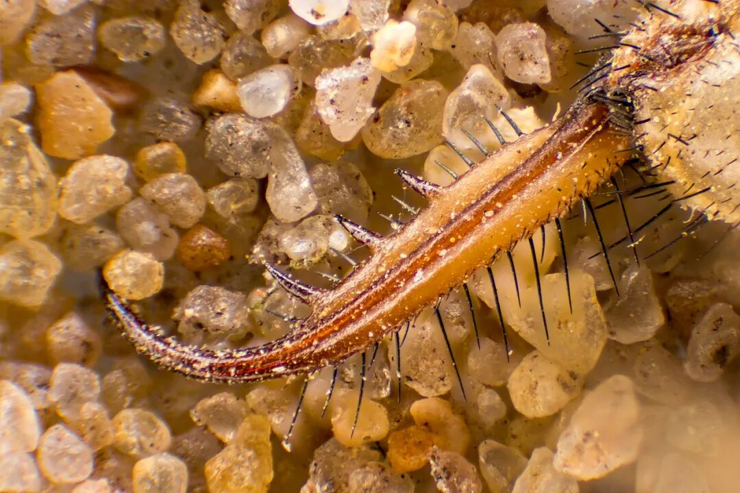 它们身上布满了鬃毛,这些鬃毛有助于它在沙土中固定自己,以施加更大的牵引力,从而让它能够制服那些比自己大得多的猎物。