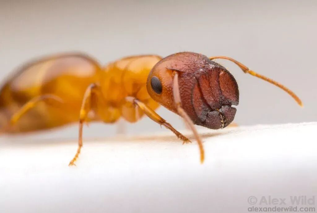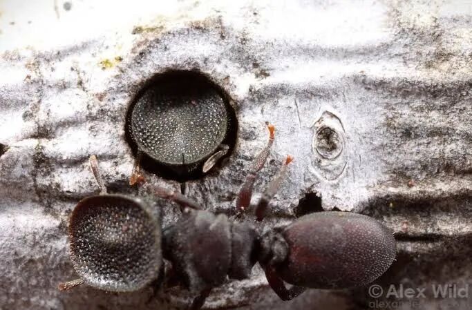 这种独特的昆虫是蚂蚁!它们的头部就像一个窨井盖一样,显得非常特殊。