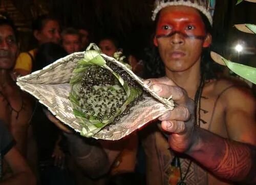 最后,仪式开始,男孩将自己的双手放入手套中任由蚂蚁叮咬,而且为了激发蚂蚁的攻击性,他们还会用烟熏蚂蚁。