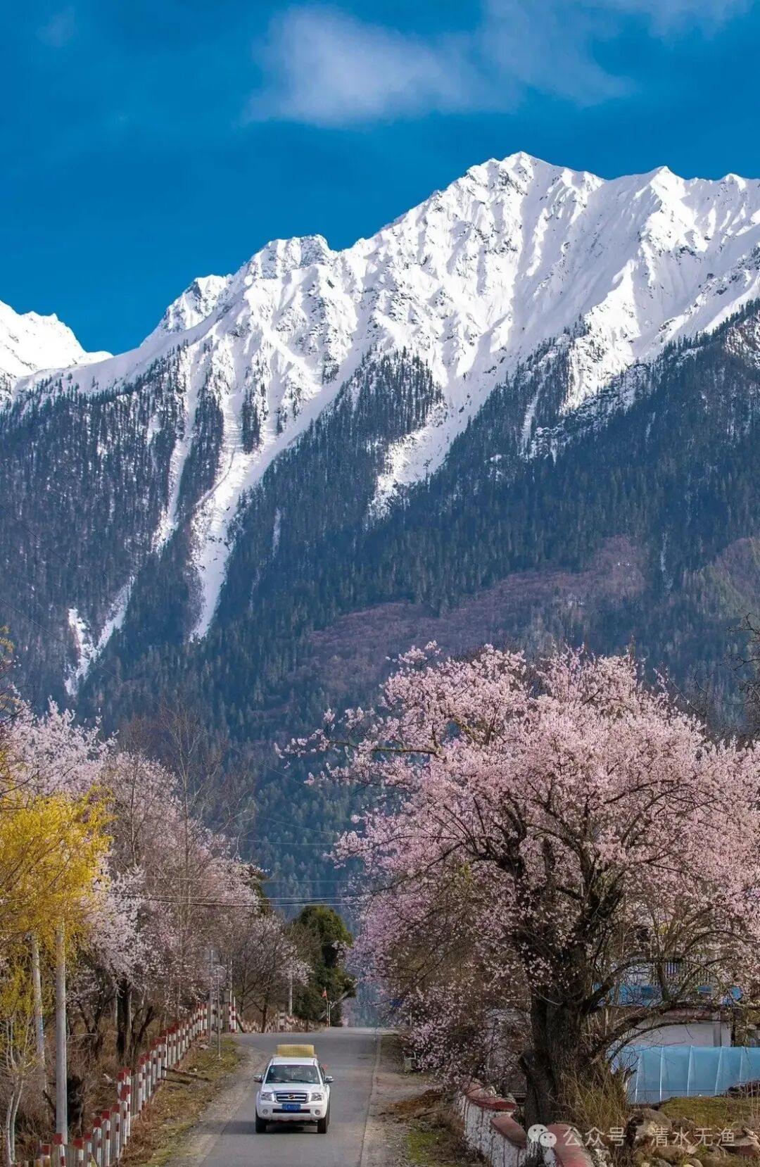 在高原雪峰的衬托下,那一片片粉色的桃花显得格外妩媚,走在400年的野生桃树下,让你仿佛步入了传说中的桃花岛,真是道中有桃花,花中有仙境。