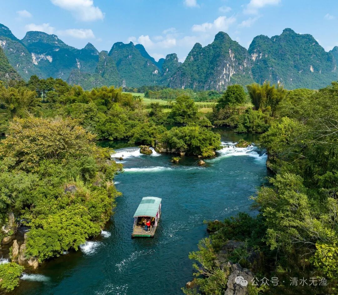 在大新中部还有个小众但去了绝对不会后悔的景点峒那屿湾。这里是桂西南奇山秀水之精华的聚集地,被誉为“别样漓江”、“桂水仙河”,曾是多部影视剧的取景地,如《花千骨》和《蜀山战记》等。