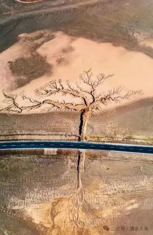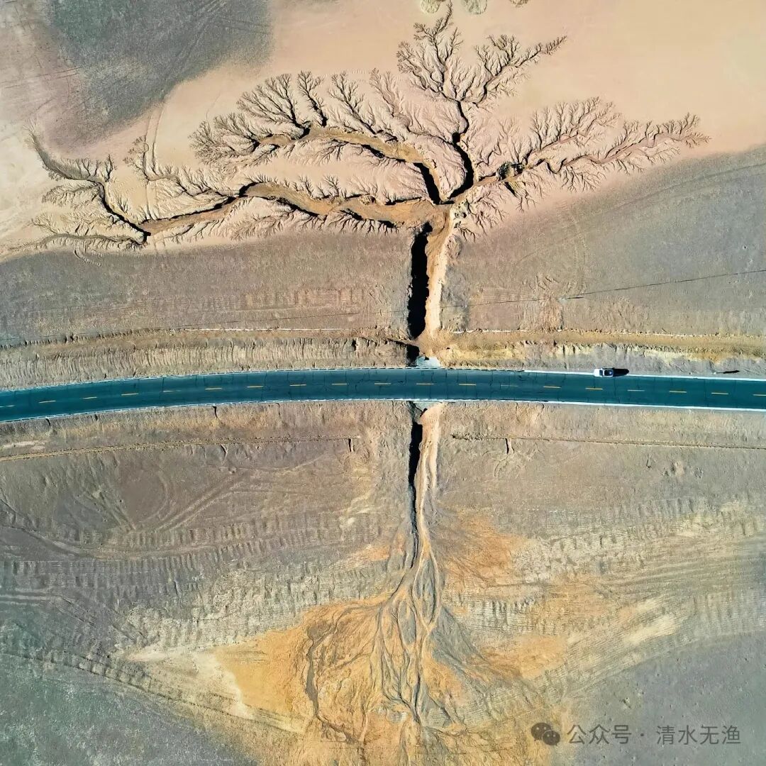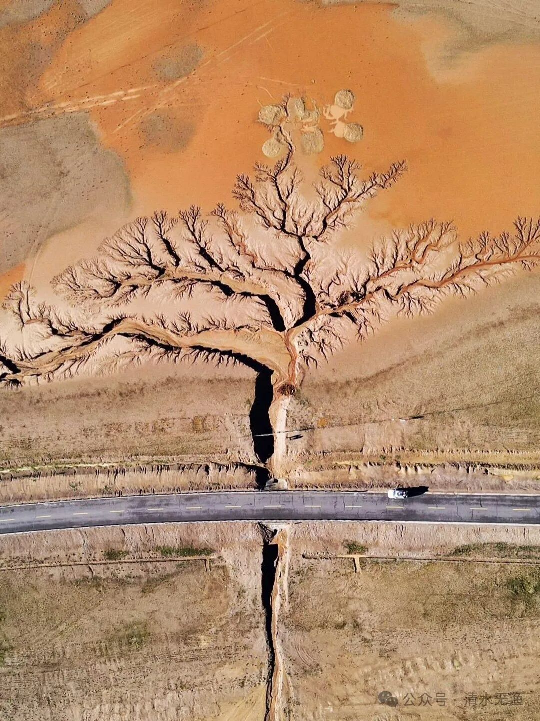 “只有我,静静守护大漠,静待花开”从图中可以看出,大地之树是由许多沟壑连接在一起形成树形,有根有枝,形成一棵树的样子。看一眼便能令人感到震惊不已,这是大自然的巧手送给人类的礼物。