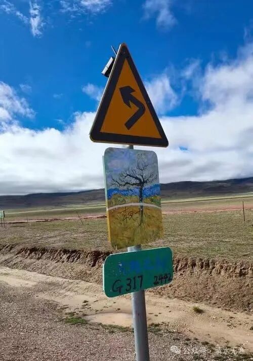 其实,“大地之树”的位置很好找,主要是找对方向,它位于那曲市尼玛县达泽措南,距尼玛县城30公里,317(2442)国道石墩旁。这棵树被317国道一分为二,它的树干在317以北,它的树根在317以南。