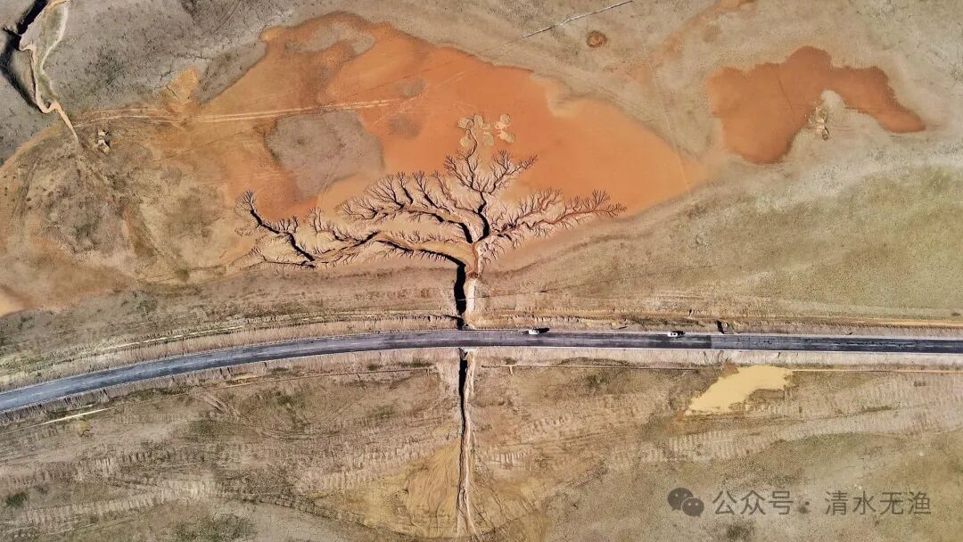 那曲连接着阿里地区,是很多人自驾爱好者们自驾阿里北线的常规线路,喜欢西藏的朋友都知道这句话,无阿里不西藏!阿里是西藏最美丽的地方之一。这里有世界第一高峰珠穆朗玛峰,有世界中心的神山冈仁波齐,还有镶嵌在高原上无数美丽的湖泊。在自驾西藏阿里环线公路的必经之路上,就有这样一棵树。它的主干在国道南侧,根在国道北侧。如果靠得太近,将无法看清它的模样。只有站在高处远眺,才能一睹它的真容。或使用无人机拍摄以获取全貌,它就是“大地之树”。