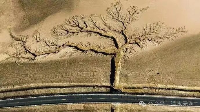 关于这棵树是如何形成的,据说,这棵“大地之树”是河口海滩潮汐形成的特殊“潮沟”地貌。河流是大地的脉络,经长期冲刷和潮汐侵蚀形成的自然景观美不胜收。
