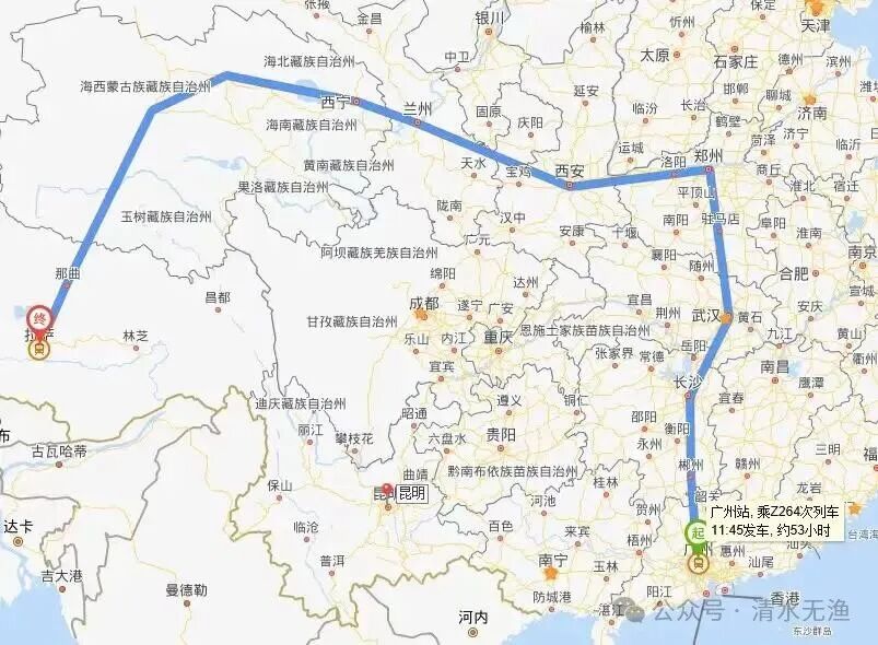 “坐上了火车去拉萨,去看那神奇的布达拉,去看那最美的格桑花呀,盛开在雪山下”在徐千雅的歌声中,我背着简单的行囊出发了。从广州出发到拉萨全程4980公里,硬座447元,显示需要53小时,但其实是超时了2个多小时,我是坐了55个多小时才到达拉萨。