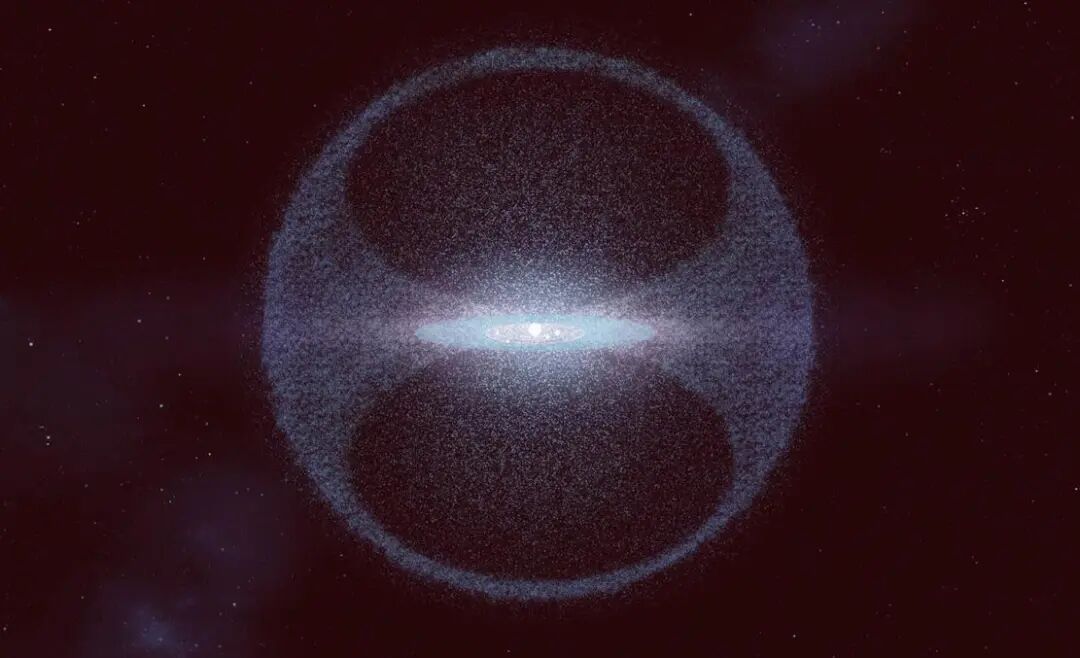 这看上去似乎有点道理,但仔细分析一下,我们就会发现实际情况并非如此。实际上,太阳系是指以太阳为中心,并被太阳引力约束在一起的天体系统,而在其最外层的区域,其实运行着大量的冰质小天体,它们一起组成了一个被称为“奥特星云”的球状结构。