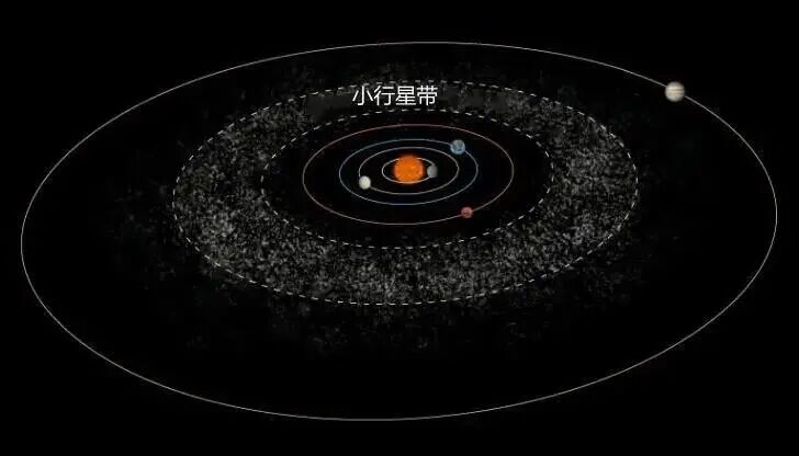 “小行星带”是一个环状结构,其内侧边缘与太阳的距离约为2.17天文单位,外侧边缘与太阳的距离约为3.64天文单位,简单计算一下可知,即使不考虑“小行星带”的厚度,这片区域中小天体之间的平均距离也高达77.7万公里,这是什么概念呢?