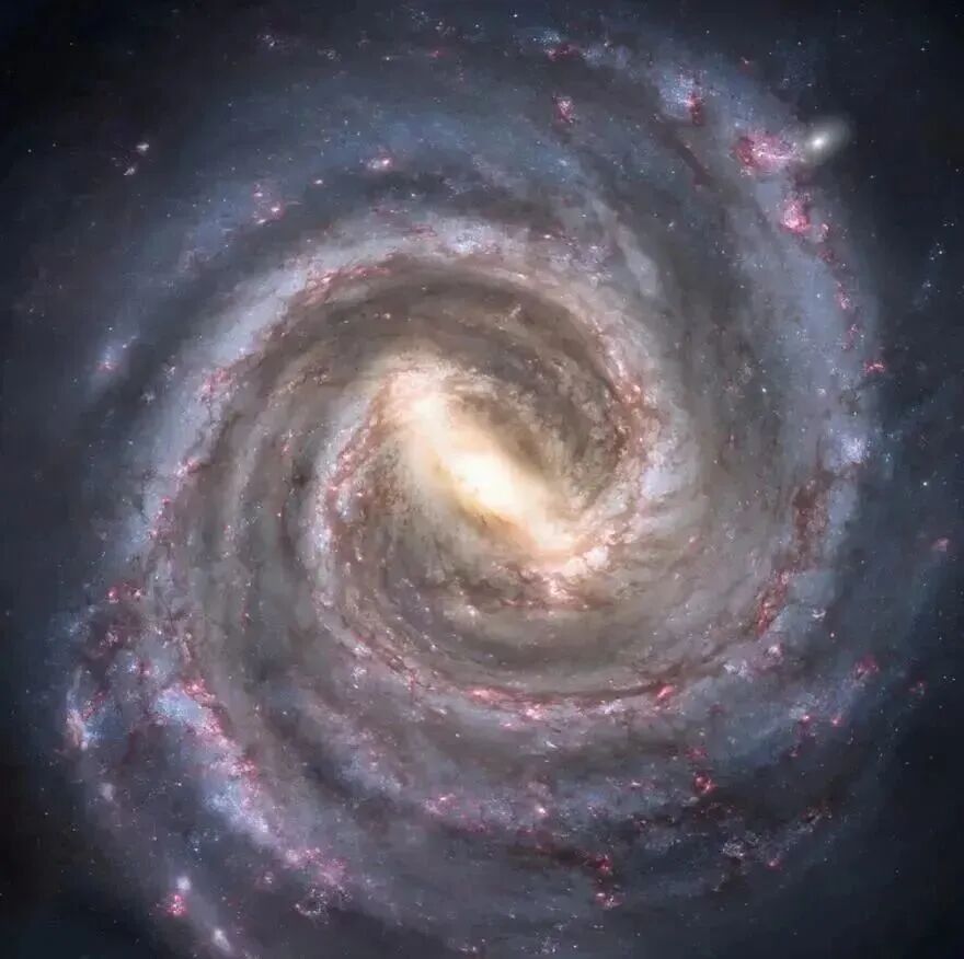 据此我们可以看到,银河系中包括太阳在内的众多天体,其实是在围绕着整个银河系的共同质心转的,所以如果要问银河系在绕着什么转,那么答案就是,比银河系更宏观的上一级引力系统——整个“本星系群”的共同质心。