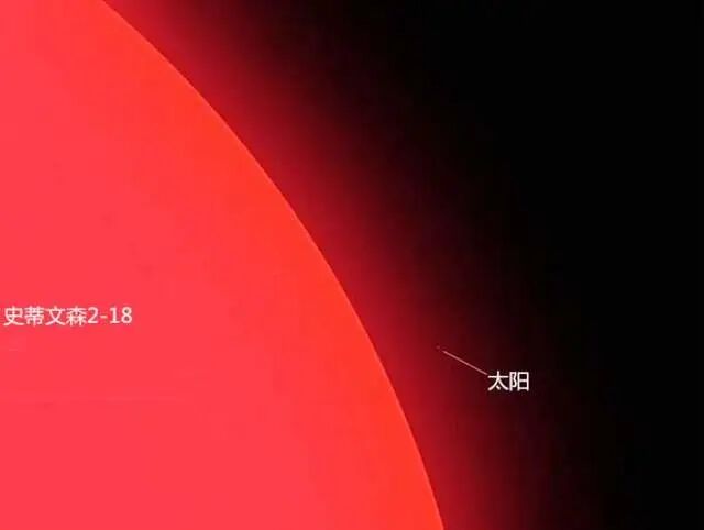 在盾牌座方向距离我们大约2万光年的位置上,有一颗被称为“史蒂文森2-18”的红特超巨星,它是已知体积最大的恒星,其体积大约是太阳的100亿倍,而质量却只有太阳的12到16倍,也就是说,它的最低估算密度大概只有太阳密度的0.0000000012倍。