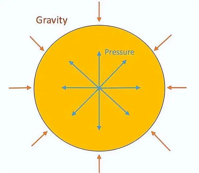 对于一颗稳定存在的恒星来讲,其内部的这两种力量其实是保持着一种动态的平衡,具体表现为,引力强了,恒星就会收缩,恒星收缩了,其核心的温度和压强就会提高,于是核聚变反应就更激烈,从而产生更强的“辐射压”,然后恒星就会膨胀,恒星膨胀了,其核心的温度和压强就会降低,核聚变反应就会减弱,于是引力再次占据上风,然后恒星又会收缩,如此反复。
