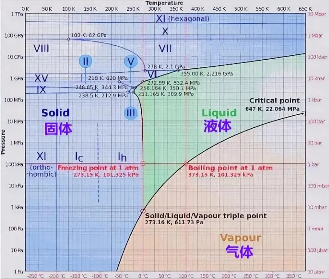2、水的液态范围:无论是从温度还是从压强来看,水都可以在较大的范围内呈现为液态,而在碳基生命能够生存的自然环境中,其温度和压强的范围与之有很大的重叠。