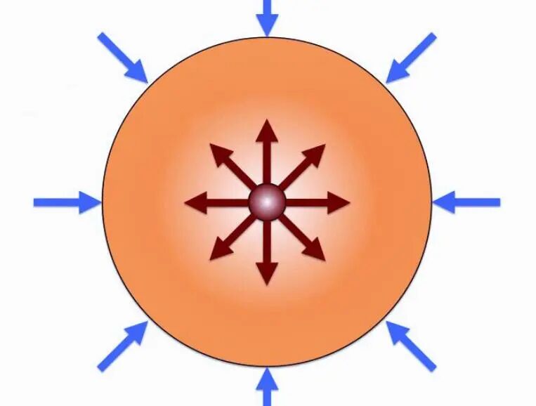 宇宙中每一个天体的自身引力,其方向都是笔直地指向天体的质心,我们可以将其简单地理解为,天体的引力一直在试图将自身所有的物质都“压缩”进天体的质心里面去。