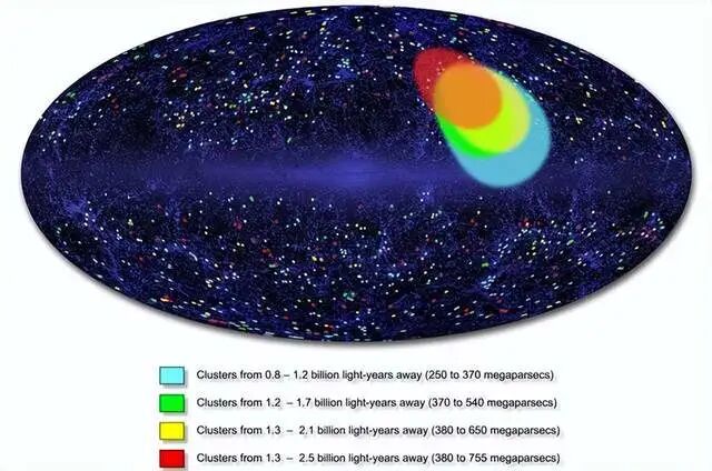 因为科学家发现,在可观测宇宙中一片跨度约为30亿光年的区域内,几乎所有星系的“本动”都是指向位于半人马座和船帆座之间的同一个位置。