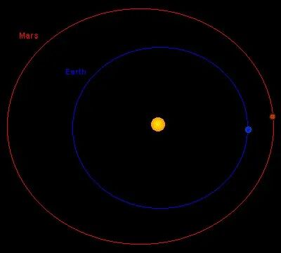 正如我们所知,地球的围绕火星的公转轨道比火星更接近太阳,也就是说,地球运行在火星公转轨道的内侧,所以在火星上观察,地球就总是会出现在太阳的附近。