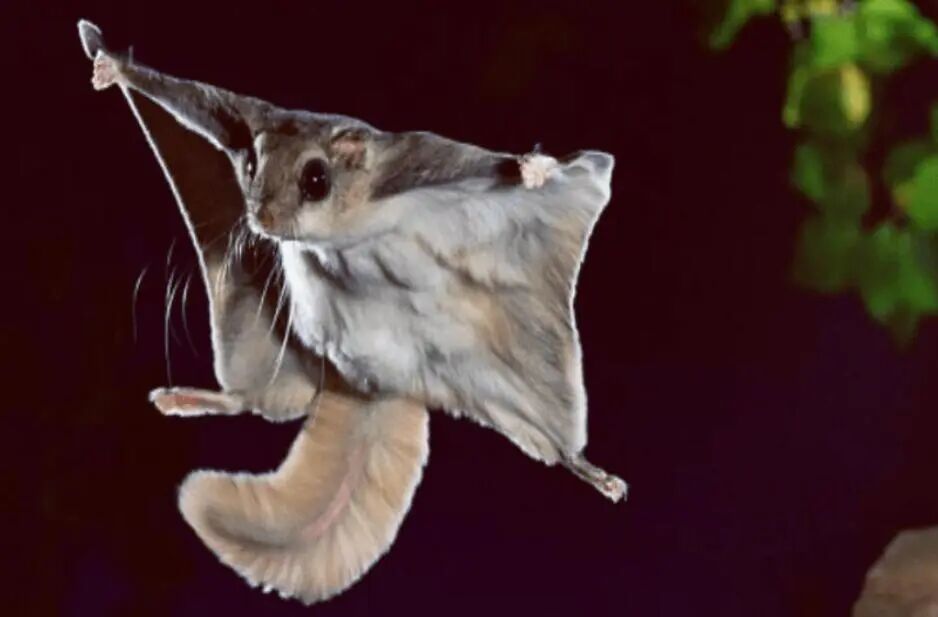 与常见松鼠不同的是,“复齿鼯鼠”的四肢之间长有能够展开和折叠的肉质皮翼,这使得它们可以爬到树枝或其他高处一跃而下,然后利用展开的肉质皮翼在空中滑翔,在此期间,它们可以灵活地调整身体的姿态和肉质皮翼的形状,以控制滑翔的方向和速度,进而迅速准确地滑翔到目标位置。